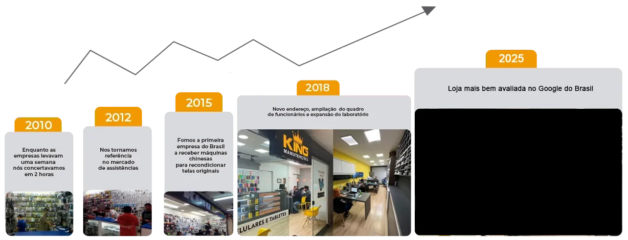 A King Manutenções é uma Assistência Técnica de Celular em São José dos Campos especializada em troca de telas, com mais de 4500 avaliações positiva no google, nos tornamos referência em nossa cidade e no Brasil como a assistência técnica mais bem avaliada.