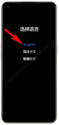 Passo 3: Na tela com um menu em chinês, toque no idioma “English” ou selecione a opção com o volume e depois pressione o botão Power para confirmar.