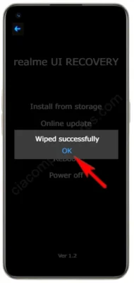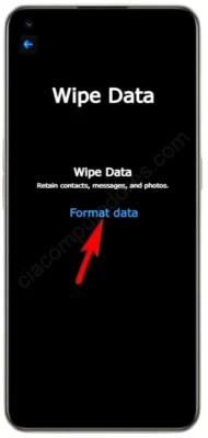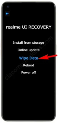 Passo 4: Na tela de recuperação (recovery) do celular Realme, selecione a opção “Wipe Data” e pressione o botão Power para confirmar.